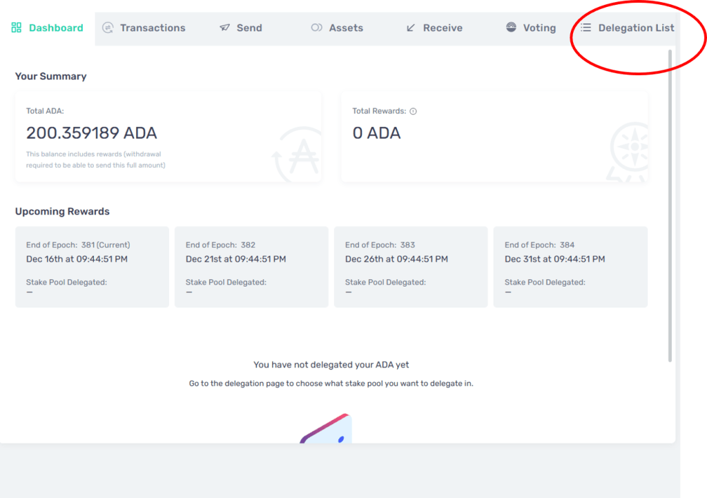 As mentioned earlier in this article, the unique feature of Cardano is that a user does not have to send their ADA crypto anywhere to delegate to a specific pool. The ADA remains in the user wallet the whole time and there’s no need to lock up your ADA for any specific period of time.