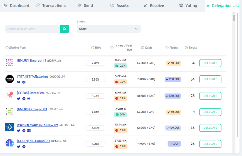 The ROA (Return of ADA annualised) is displayed, as are the costs associated with each particular pool. Then, just browse or search for the pool you wish to delegate to and select ‘Delegate’ and that’s it!