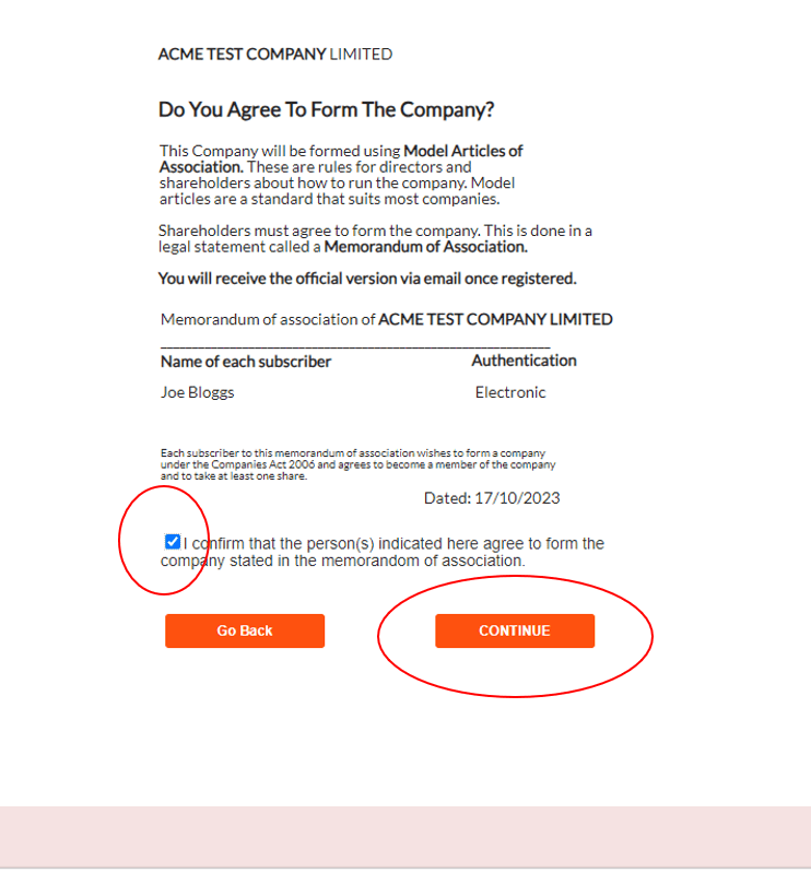 Next, you will need to confirm to Agree To Form The Company. Tick the box to confirm.