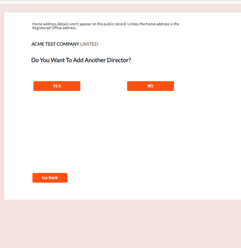 Next, you can add Another Director if required. If you select YES. you will be prompted to enter the Full Name and Address details of the additional director.