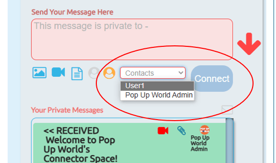 Enter your message in the red Message Box and click Connect. You will receive verification of your sent message in Your Private Messages.
