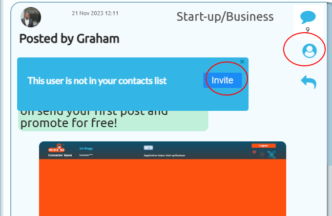 If you have the Email Address of the contact you wish to invite you can enter their email address in the Send Invite For Private Message field and Click the Button. Your contact will be invited to join Connector Space and will appear in your Contacts List once accepted.