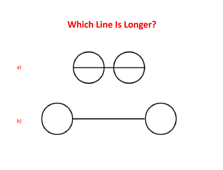 Therefore, the shortcut was to visually assume that one line was longer than the other, rather than checking our visual biases and measuring the lines to make sure.