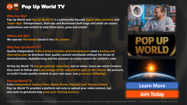 Pop Up World TV offers the opportunity to build a genuine content creation business with the bonus of additional tools available within the Pop Up World ‘Super App’ ecosystem to help market and turbocharge your content.